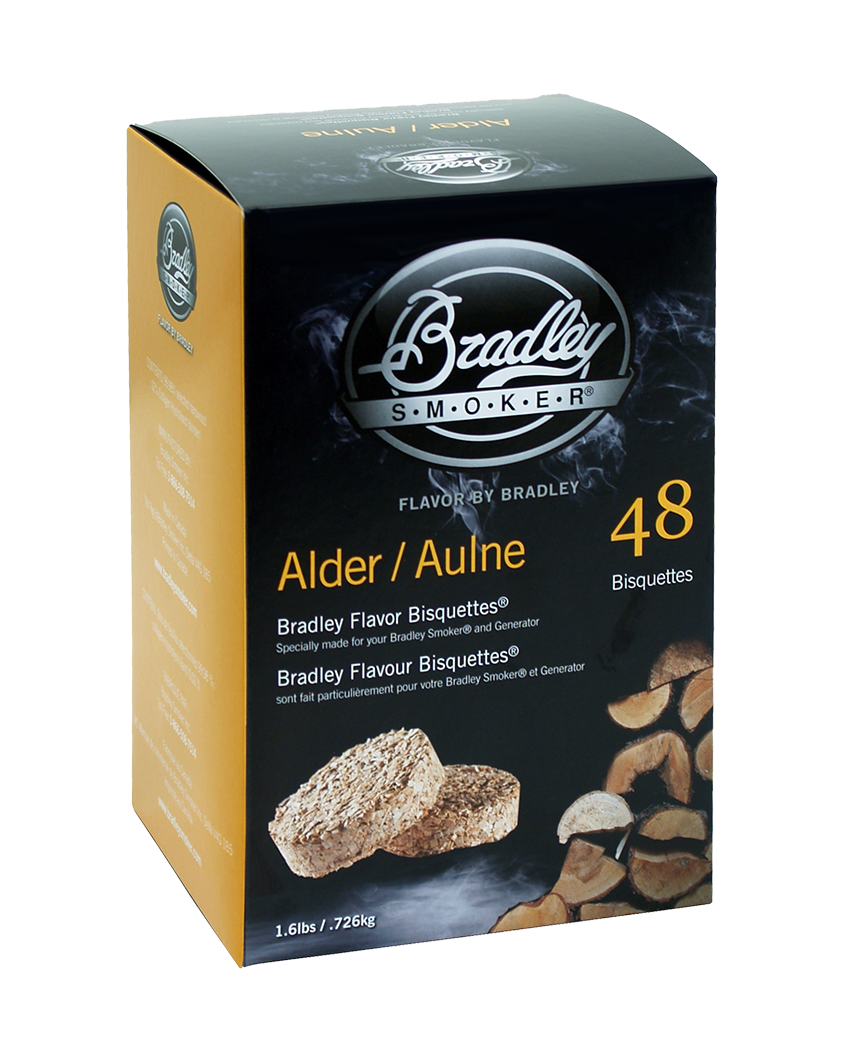 Bradley Smoker Alder Wood Bisquettes ® er laget av rent tre. Så du kan røyke mat med ren deilig smak.