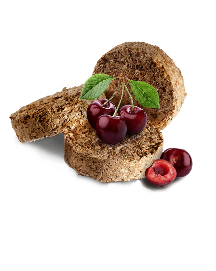 Som medlem av frukttrefamilien gir Cherry Bisquettes en mild, søt og fruktig aroma perfekt for røyking av kylling og ost. Du kan også tilberede vakkert farget beef jerky, takket være den rosenrøde fargen den tilfører kjøttet når du røyker.